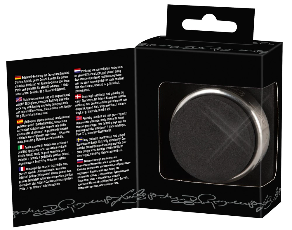 Prachtig afgewerkte Cockring van Duitse makelij in 3 verschillende afmetingen. Plaats deze edelstalen penisring met fantasiegraving op je penis achter je balzak en geniet van je erectie…