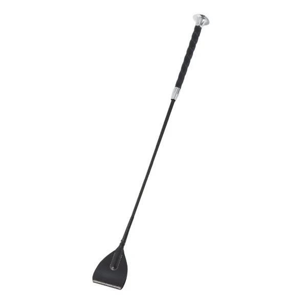 Dwing je slaaf haar respect af met dit elegante rijzweepje! Een breed lederen uiteinde aan het eind van de gevlochten, kunststof kern garandeert dat jouw slagen snel en stylish zijn. Het handvat heeft mooie metallic details aan de boven- en onderkant.