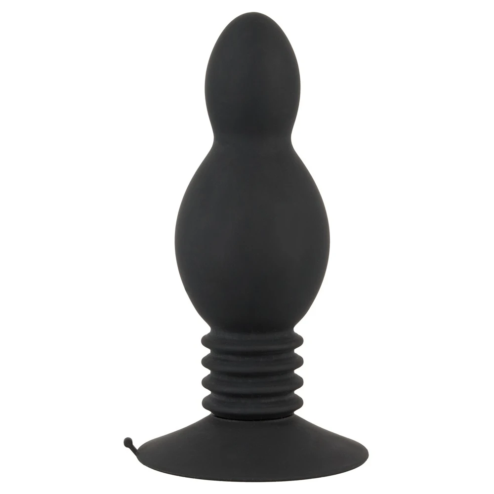 Black classic butt plug on a sturdy suction base that bounces up and down when it is pushed down. It easily enters intimate depths thanks to its velvety soft surface to gift him/her inimitable feelings of anal (or vaginal) ecstasy.
