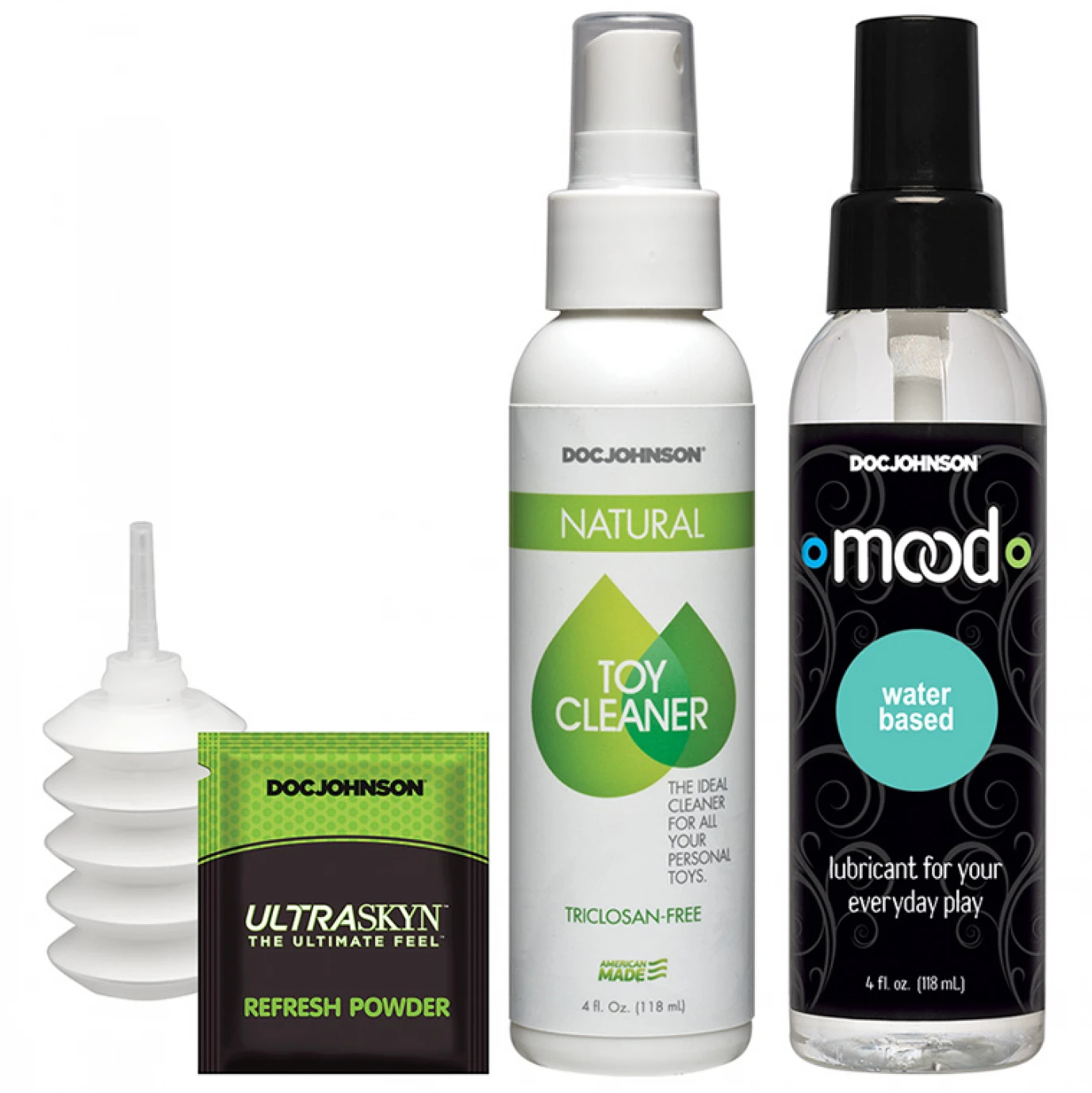 Attachments can be used with the harness, the included Vac-U-Lock suction cup, and any other accessory or harness in the line. The Vac-U-Lock Dual Density Experienced Set also includes Doc Johnson Natural Toy Cleaner and ULTRASKYN Refresh Powder to properly and hygienically maintain your dual density ULTRASKYN attachments. Every product in the patented Vac-U-Lock system is designed to help you create any strap-on or toy you’re in the mood for, and it’s as simple as popping on the attachment of your choice.