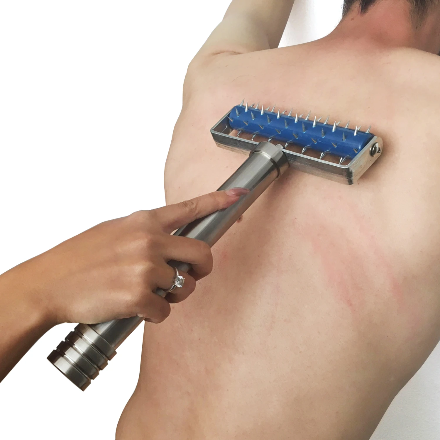84 Scherpe pennen op een kunststof rol met een mooie RVS handgreep laten je sub smeken om genade.