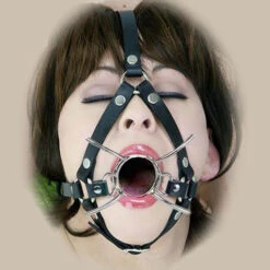 Silence and submission are within a claw’s grasp with this metal spider leg O-ring gag! The adjustable leather harness ensures your sub’s face is firmly clasped in a punishing metal spider’s embrace. Silence and style in one sleek little package at a price you just can’t beat!