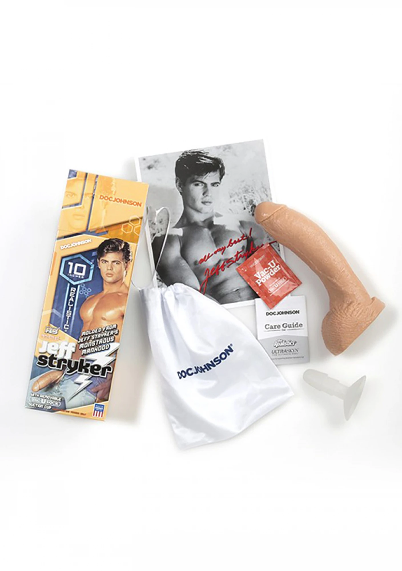 Leef je pornosterfantasie uit! Rechtstreeks gevormd uit Jeff’s harde lul van 25 cm en pluche ballen, deze ultrarealistische lul heeft de perfect gebogen schacht die je hunkert naar en verwacht van Jeff Stryker. De ballen schudden en bewegen zelfs wanneer ze worden aangeraakt. Het is gemaakt van niet-ftalaat lichaamsveilig materiaal , die de antibacteriële Sil-A-Gel-formule van Doc bevat. Wordt geleverd met bijgeleverd zijden opbergzakje. Wit. Met trots gemaakt in Amerika.