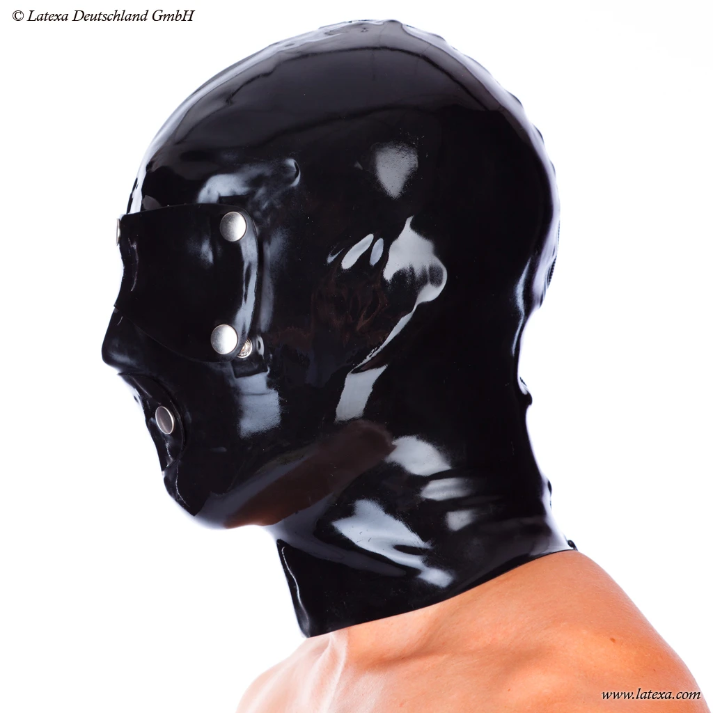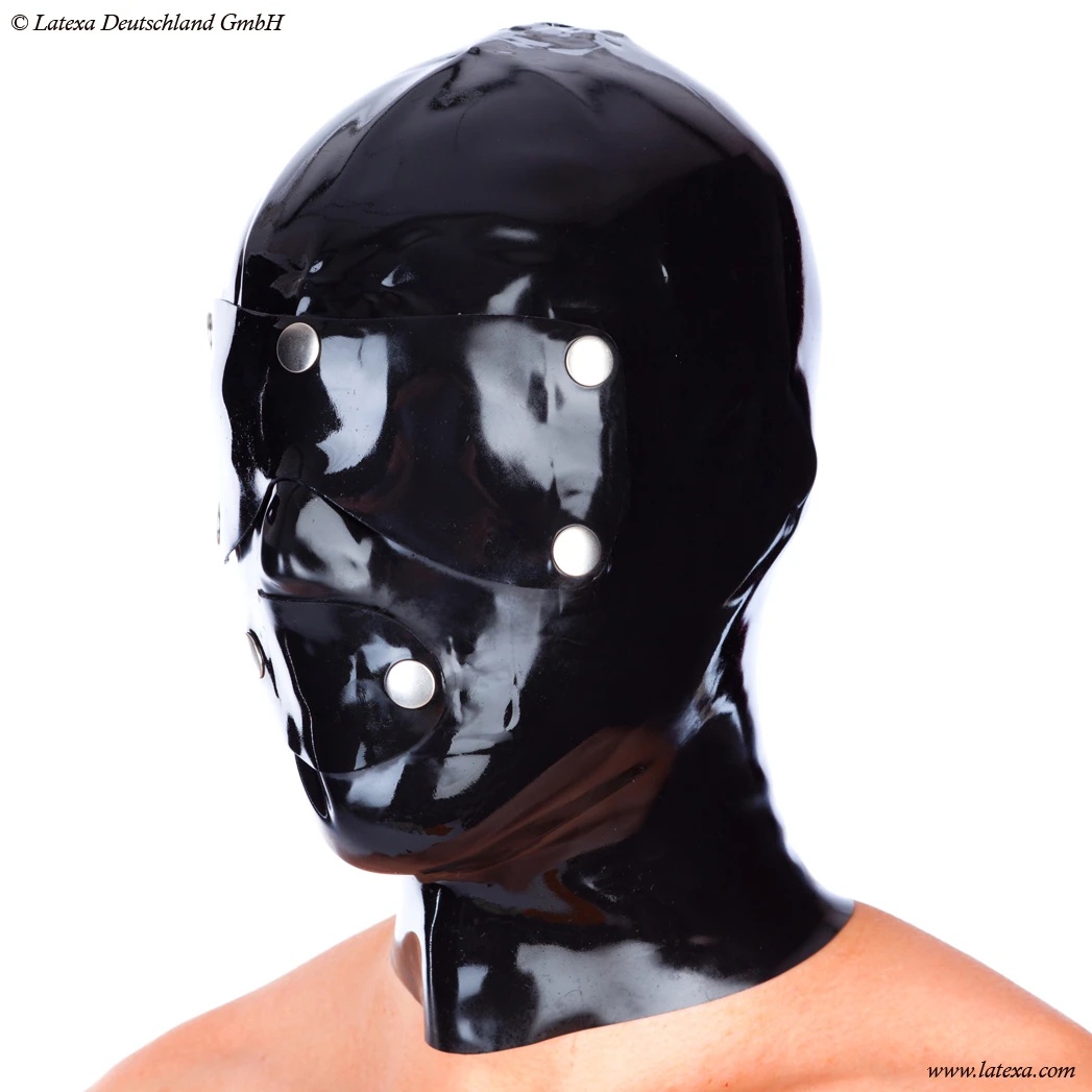 Volledig gelijmd anatomisch kwaliteits masker met ritssluiting en een materiaal dikte van 0,6mm. Wordt geleverd incl. oog- en mondafdekking (drukknoppen).