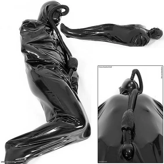 geheel van gelijmd Latex van Latex uit Denemarken. Het ultieme gevoel om compleet in latex gevangen te zijn. Aan de Latexzak is een latexkap bevestigd, welke in gesloten toestand enkel de ogen vrij laat. Deze Latex bodybag biedt een optimale uitkomst voor een onvergetelijke privé SM-sessie met uw Domina of Meester. Verras uw partner met dit nieuwe kwaliteitsartikel, volledig gelijmd.