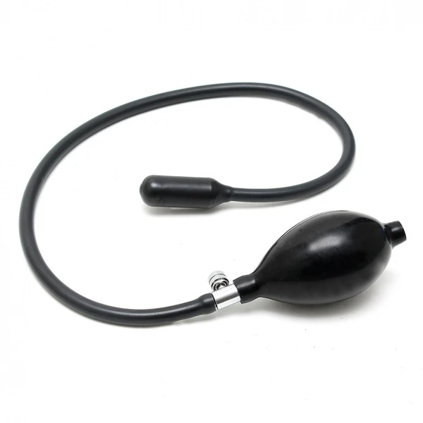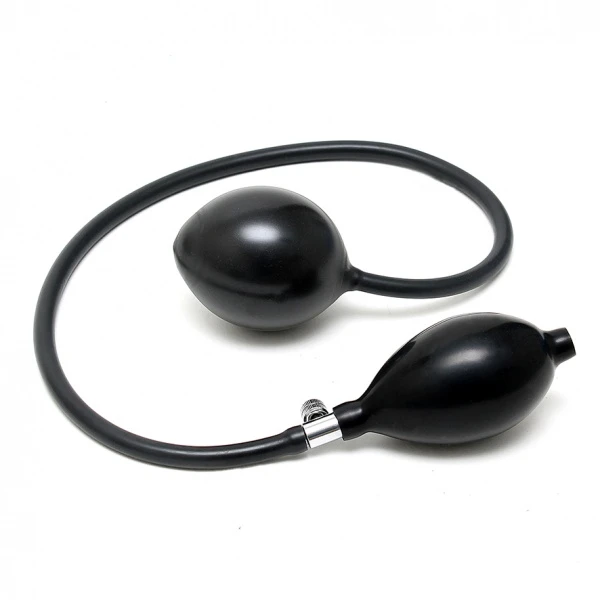 Opblaasbare latexballon met 54 cm lange buis verbonden met pomp met metalen ventiel.