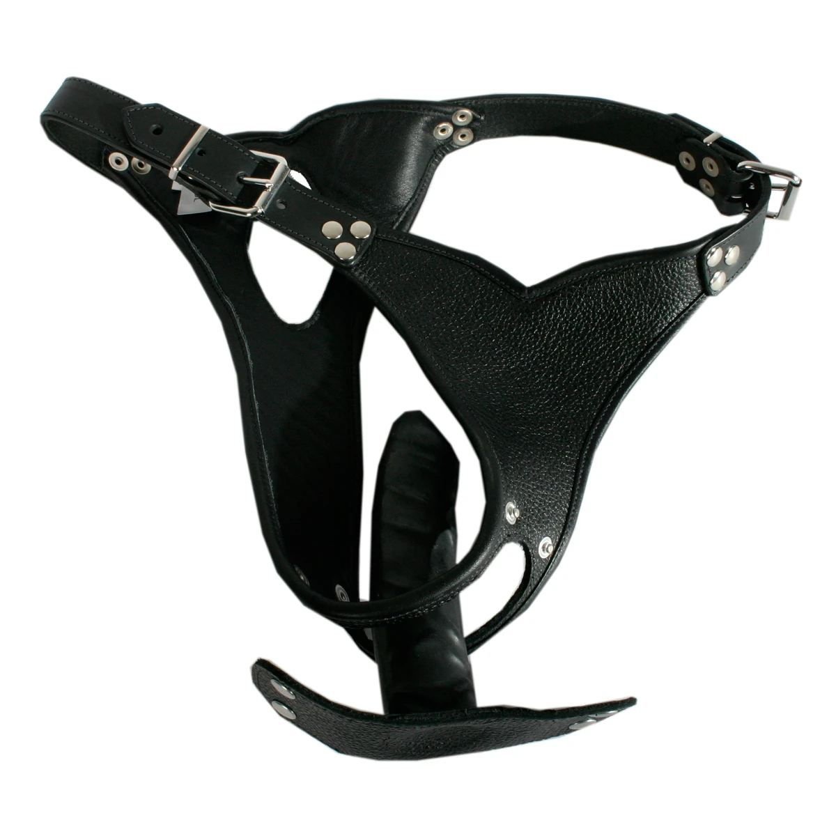 Nappa lederen fetisj slip met afneembare dildo met drukknopen. Deze kinky slip geeft u complete controle over hoe en wanneer u van penetratie kunt genieten, of het nou met de gemakkelijk in te bringen latex dildo is of door uw partner! Verkrijgbaar in de maten S/M en L/XL en verstelbaar met de gespen aan de zijkanten.