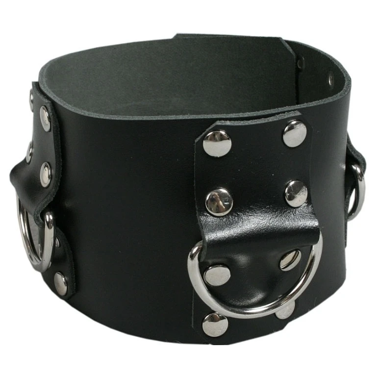 Stevige verstelbare halsband met D-ringen en studs versierd.