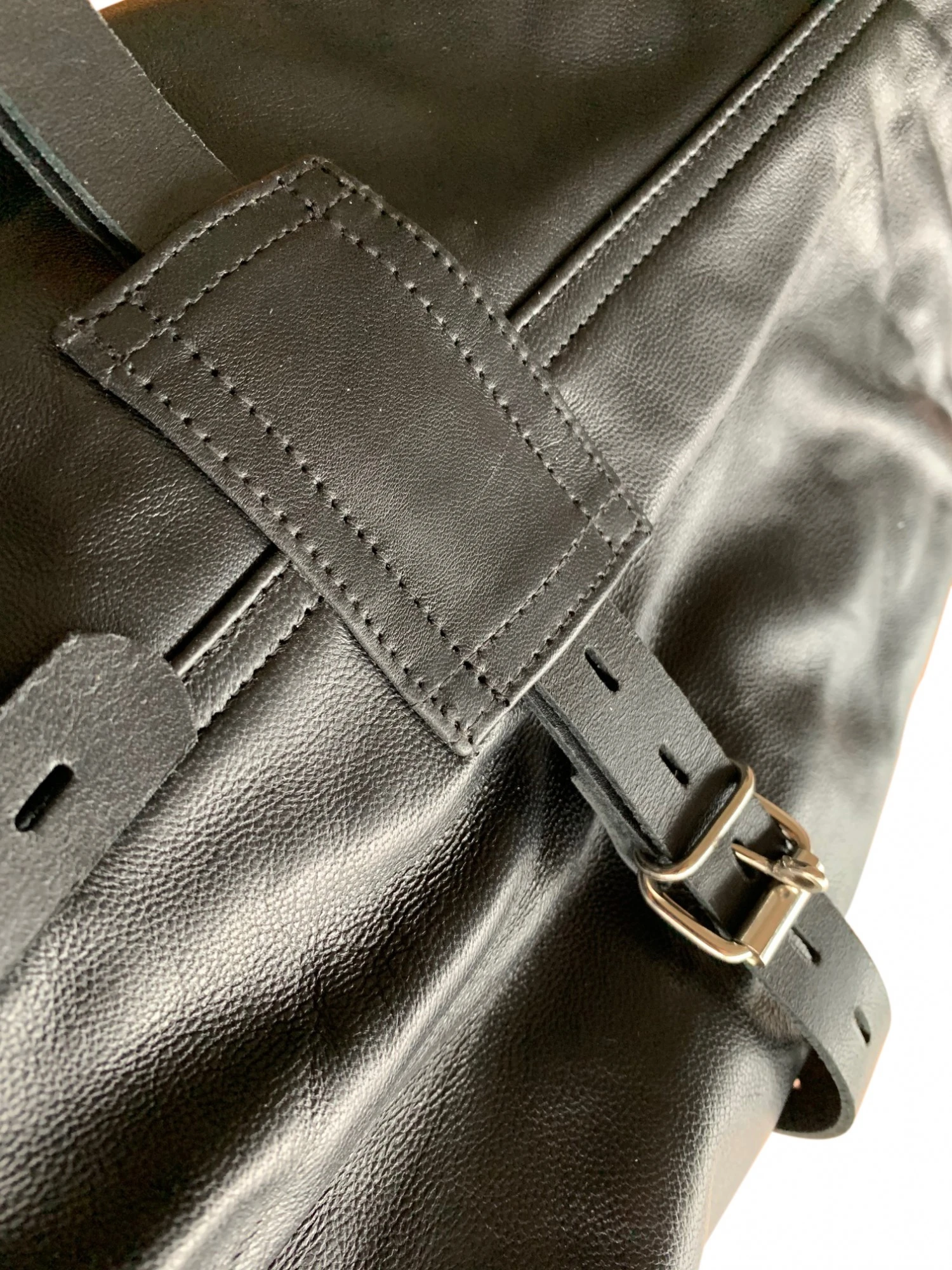 Geheel lederen single glove (monoglove). Het ultieme in arm-bondage. Absoluut uitbraakvrij. Heerlijk soepel leder voor de bondage-armschoen en dubbel, rondom afgestikt leder voor de 3 riemen.