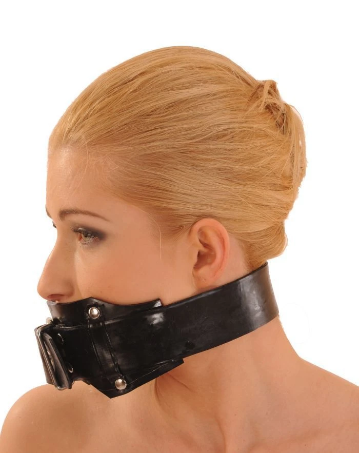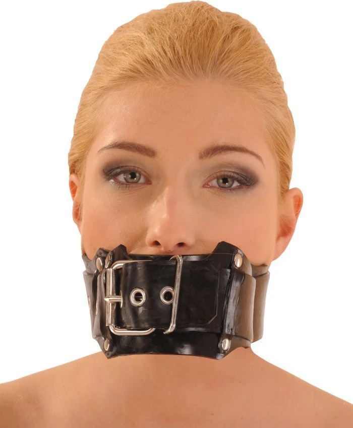 Latex gag, volledig verstelbare latex riem met gesp aan de voorkant. Binnenkant latex bal.superb afwerking en ontwerp door Anita Berg.
