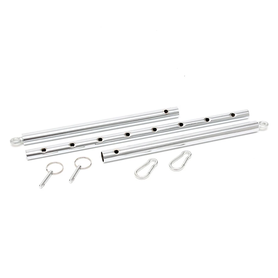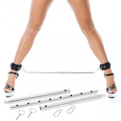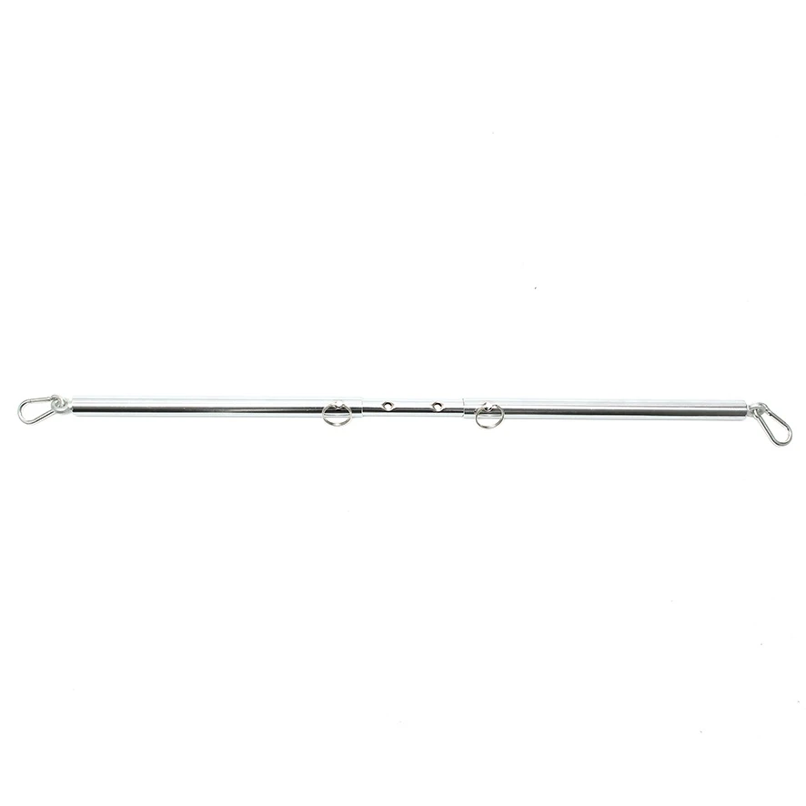 Rimba Bondage Play metalen spreidstang met 2 ringen aan elk uiteinde een ring om uw favoriete hand of voet boeien aan te bevestigen. De stang is instelbaar van 55 tot 85 cm.