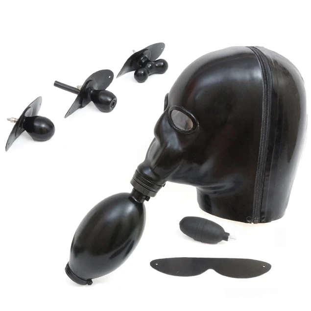 Multifunktioneel zwart, clinic red (oranje) of semie-transparant Latex masker met 40mm draad connector.