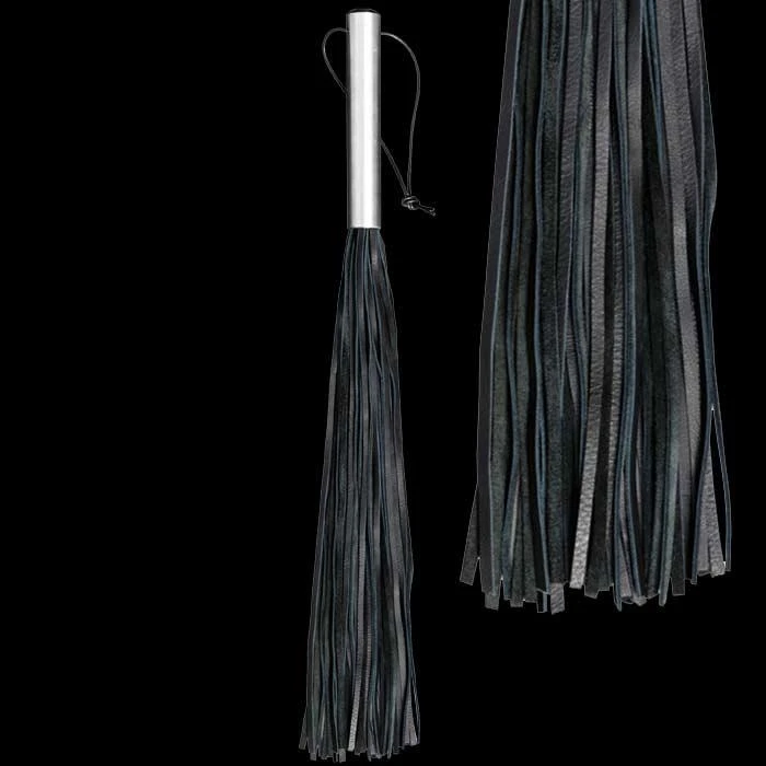 Prachtige zweep met 36 soepel zwart Nappalederen striemen, voorzien van een hoog gepolijste aluminium handgreep.