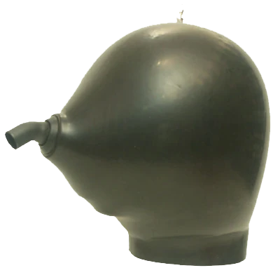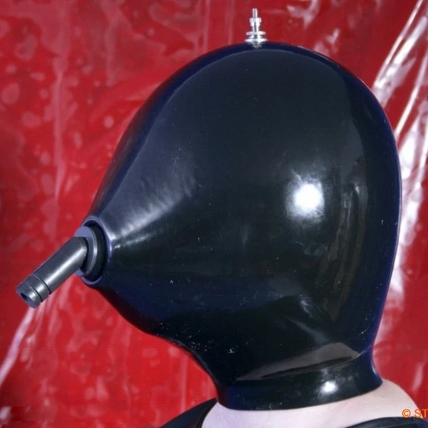 Zwarte zware rubber Latex Helm uit de NKMb–serie vanStudio Gum verkrijgbaar in 4 modellen: