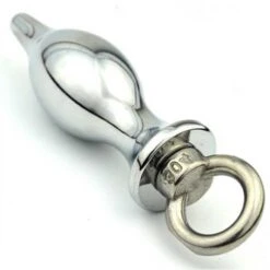 Polished Aluminium Butt Plug Ø 35 mm with Metal Handle