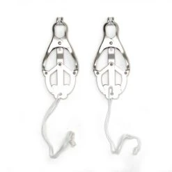 Metalen klemmen met rubberen dopjes op de plaats waar de tepel geklemd wordt.