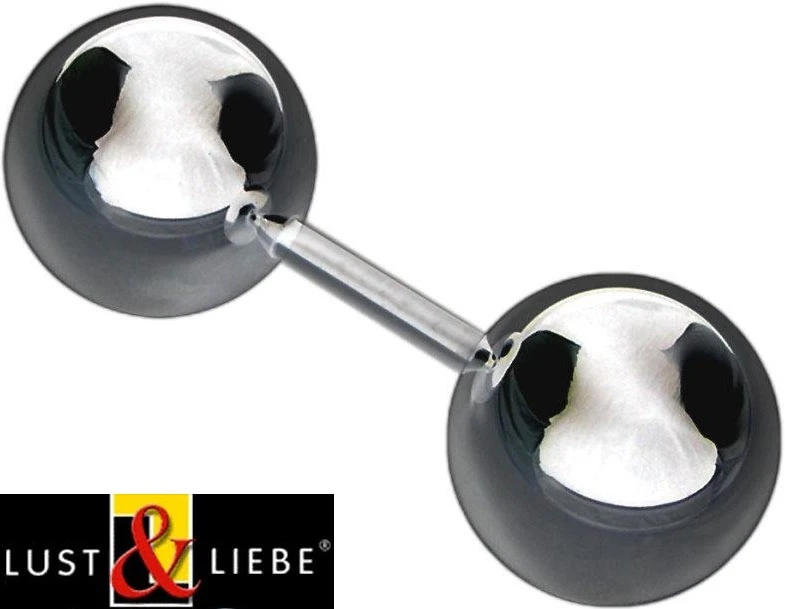 Geisha Balls van Lust und Liebe gemaakt van gepolijst roestvrij staal met eenstaafje verbonden. in tegenstelling tot de Love Balls, zijn deze twee ballen massief. Periodieke training is leuk en kan de spieren van de bekkenbodem goed versterken. Dit is nuttig, niet per se alleen vanuit een medisch oogpunt 🙂 Het is ook een net speeltje voor de Dom aan de Sub om in vorm te houden.
