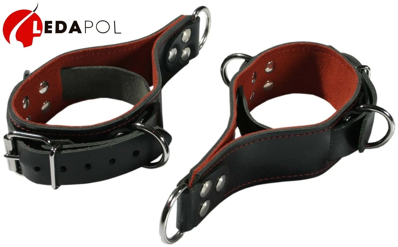 Ledapol lederen bondage enkel boeien met lus en D-ring.