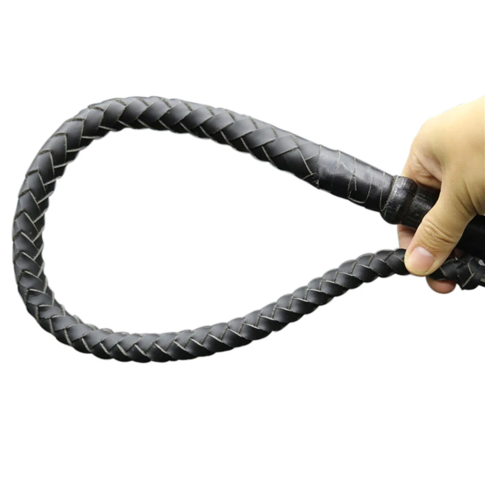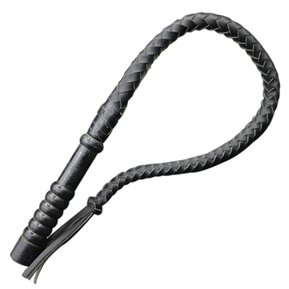 The whip is made from cowhide leather and is very intricately braided from the end.