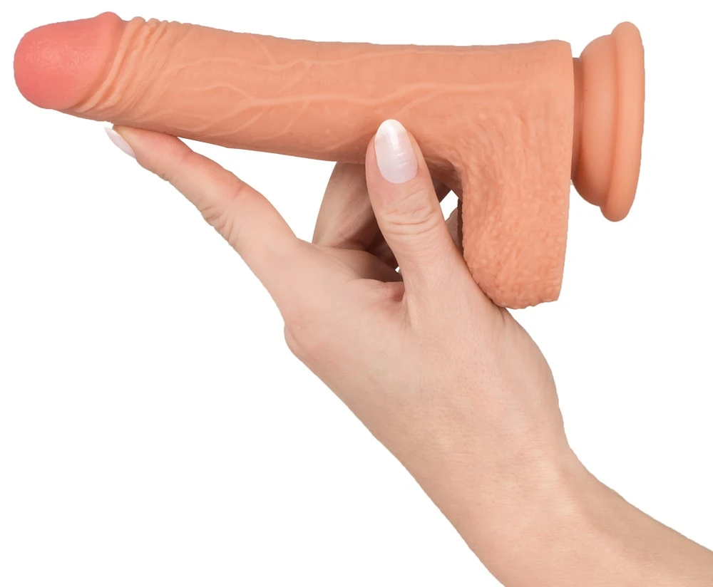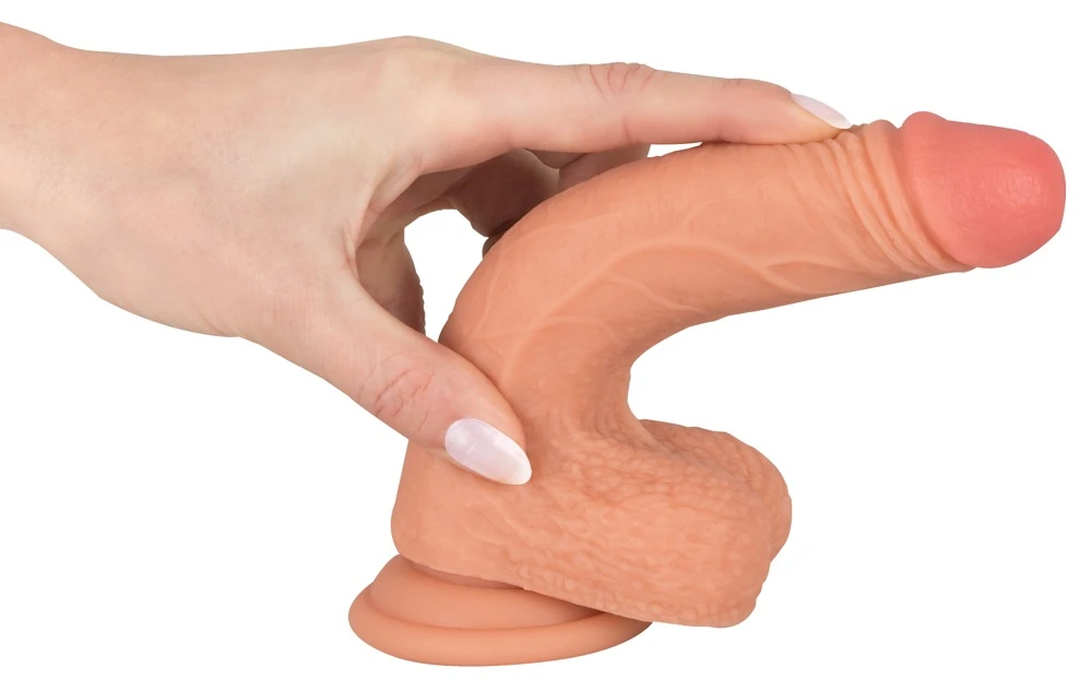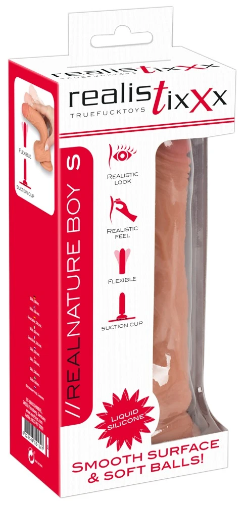 Realistische, huidkleurige dildo Real Nature Boy S van Realistixxx met uitpuilende eikel, aderen en testikels. Het heeft ook een intens, stimulerend oppervlak. Het is zeer flexibel en heeft een zuignap. Perfect voor wild, gepassioneerd plezier.