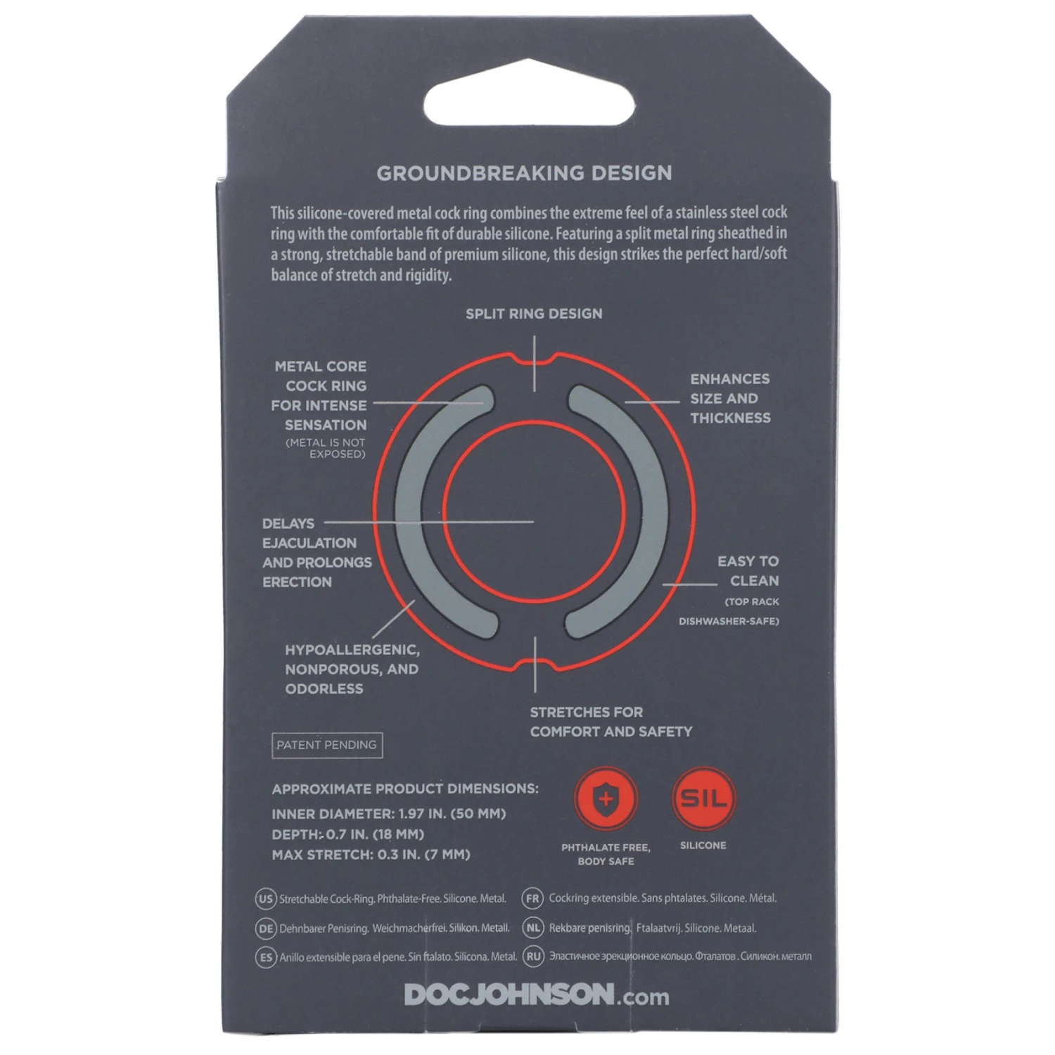 Op zoek naar iets sterkers? Dit exclusieve ontwerp combineert het extreme gevoel van een roestvrijstalen cockring met de precieze pasvorm van duurzame siliconen. Met een open metalen ring omhuld met een stevige, rekbare band van eersteklas siliconen, biedt dit ontwerp de perfecte harde/zachte balans tussen rek en stijfheid. Een afgeschuinde rand verhoogt de druk op de juiste plaatsen om de ervaring compleet te maken.