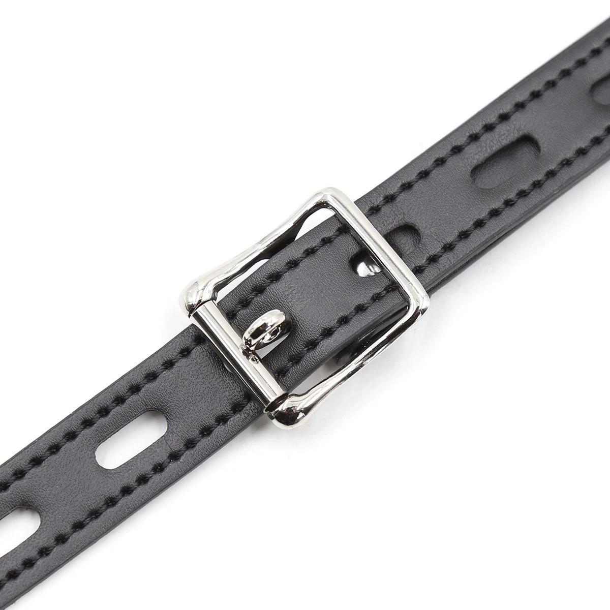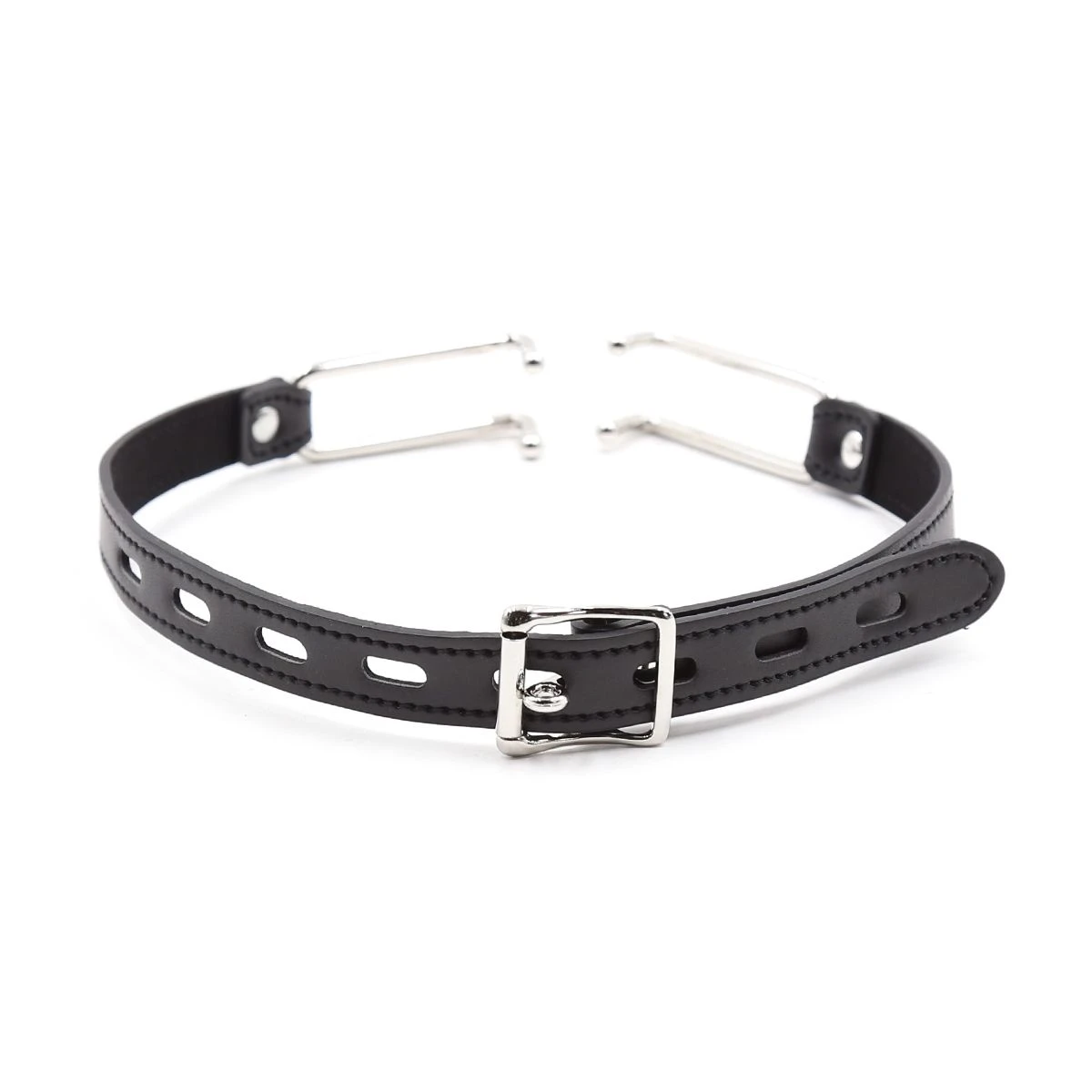 Mooie afsluitbare mond spreider van PU-Leder en metaal. De grootte van de leren riem kan worden aangepast tussen 36cm-52cm
