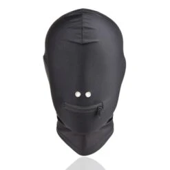 Keep him in the dark for extra stimulation with this premium stretchable spandex hood with a zipper for the mouth opening. The mouth opening can also be closed if desired by simply pulling across the zipper.