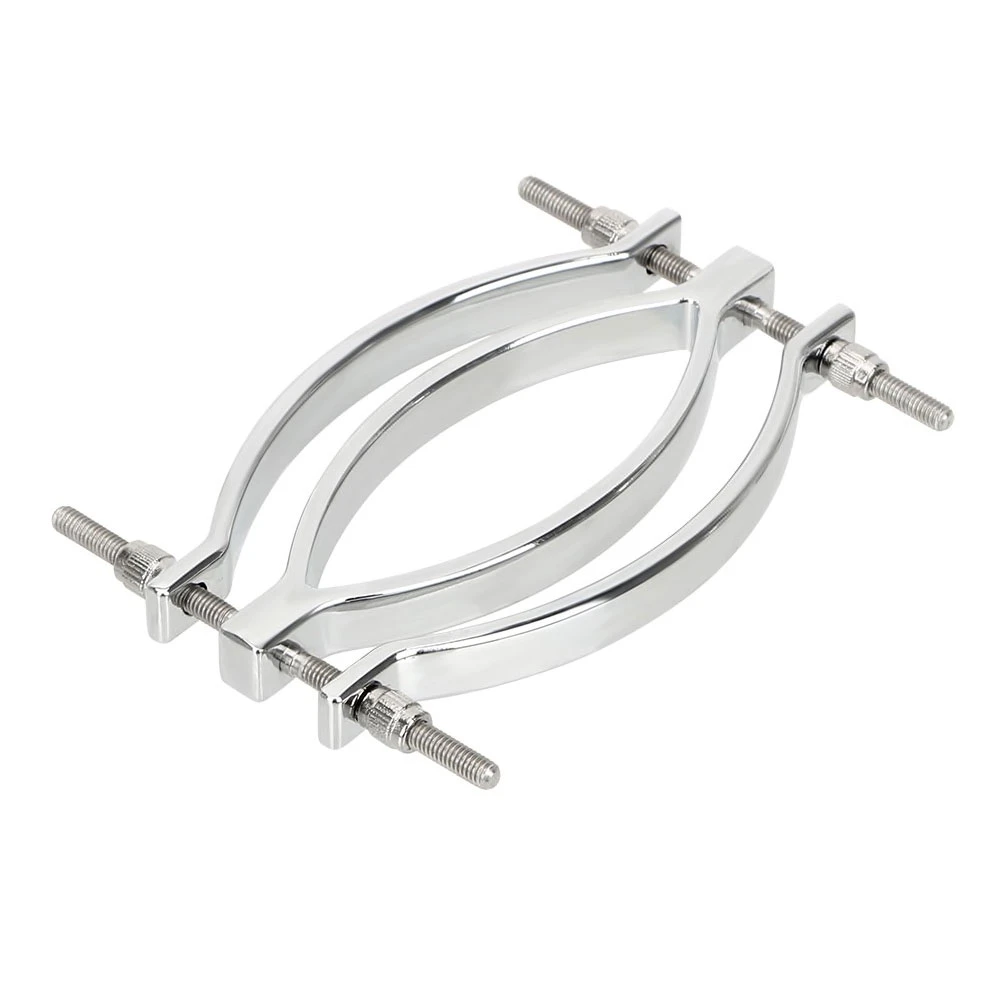Deze schaamlippen klem, individueel te verstellen met de schroefjes, zorgt dat er werkelijk niks in de weg staat om toegang te krijgen tot haar meest intieme plekje!Â