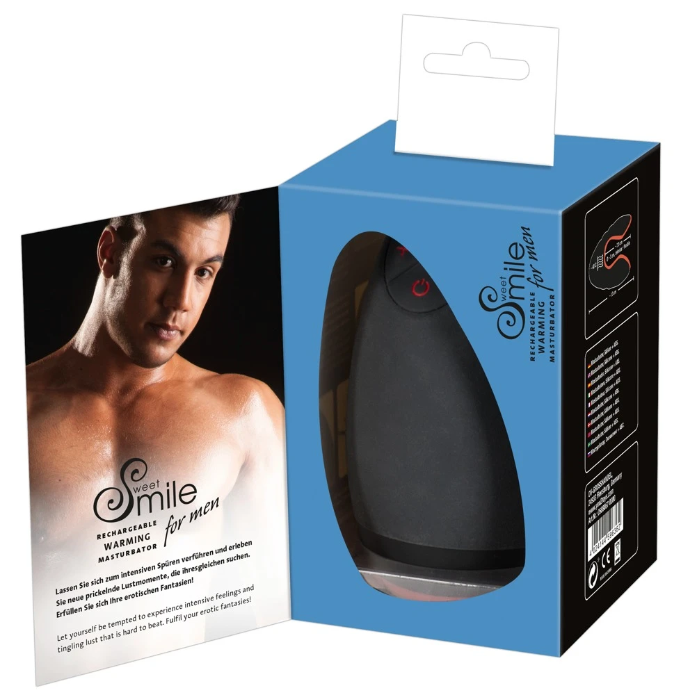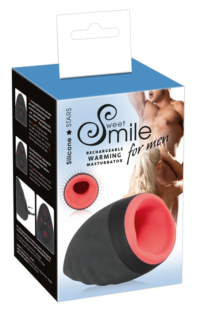 Not only does this sophisticated masturbator have powerful vibrations (6 modes, 3 intensity levels), but it also has a warming function (up to 40 °C)! With 4 buttons (On/Off, temperature, plus and minus). Rechargeable with the included USB cable. Black/pink. Complete length 13 cm, penetration depth 7.5 cm, Ø 3 cm (flexible). Splash-proof (IPX6).