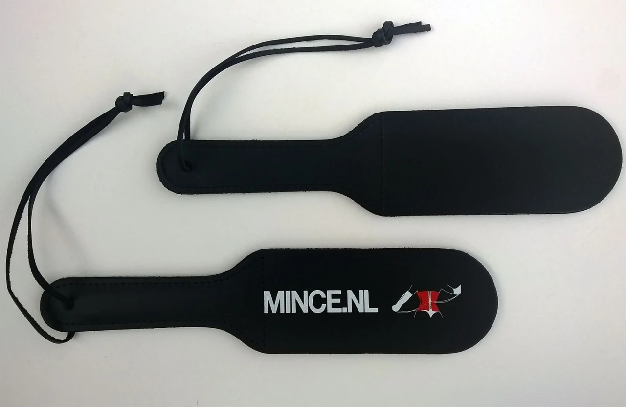 Zwart Lederen Mince-Spank-Me-Paddle van Saxos